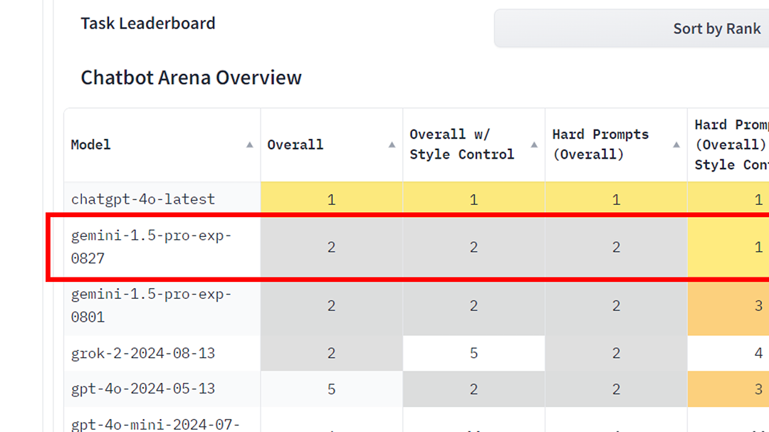 주목할 만한 점은 업그레이드된 Gemini 1.5 Pro 모델이 현재 Ai모델들을 평가하는 Chatbot Arena 리더보드에서 2위를 차지했고, 새로운 Gemini 1.5 Flash는 6위를 차지했다는 것인데요.