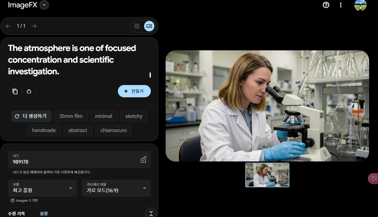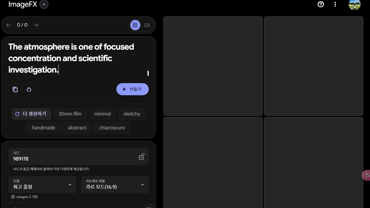 - ImageFx로 이동한다음, 프롬프트를 붙여넣고 '만들기'를 클릭합니다.