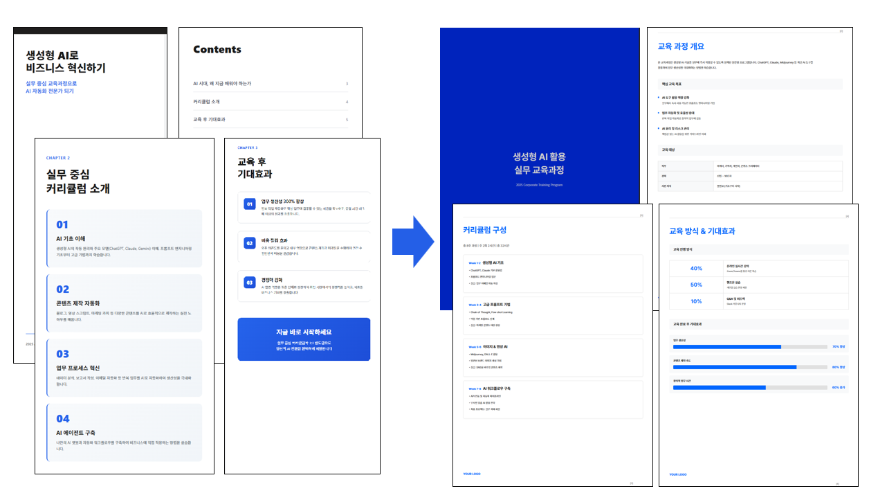 - 디자인에 들어갈 주제 제시(ex- 5장짜리 생성형 AI교육과정 제안서)