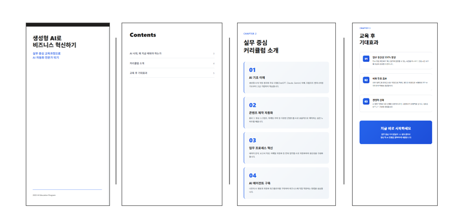 - 디자인에 들어갈 주제 제시(ex- 5장짜리 생성형 AI교육과정 제안서)