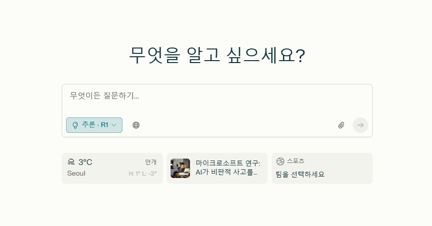 무료 계정 사용자도 하루 3회까지는 Pro 수준의 쿼리를 사용할 수 있습니다. 데이터유출 걱정없이 R1의 강력한 성능을 체험해보고 싶으시다면, 활용해보세요!